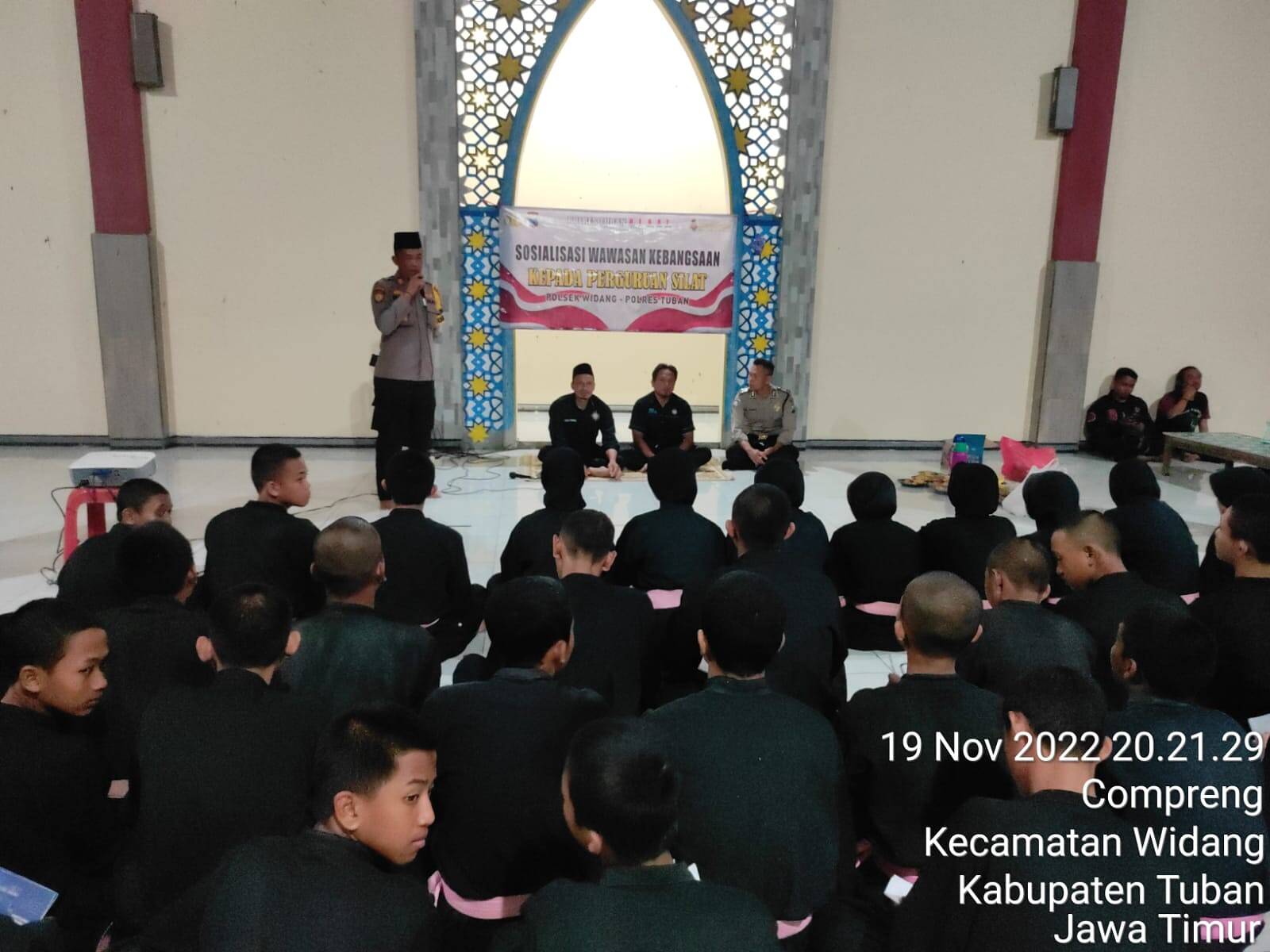 Tuban, Kabar1News.com – Menumbuhkan semangat rasa cinta terhadap Negara Kesatuan Republik Indonesia dan menambah wawasan kebangsaan, Kapolsek Widang AKP Rukimin, S.H. M.H. pada Sabtu (19/11/22) malam bertempat di SMA Negeri 1 Widang menyampaikan materi wawasan kebangsaan (Wasbang).