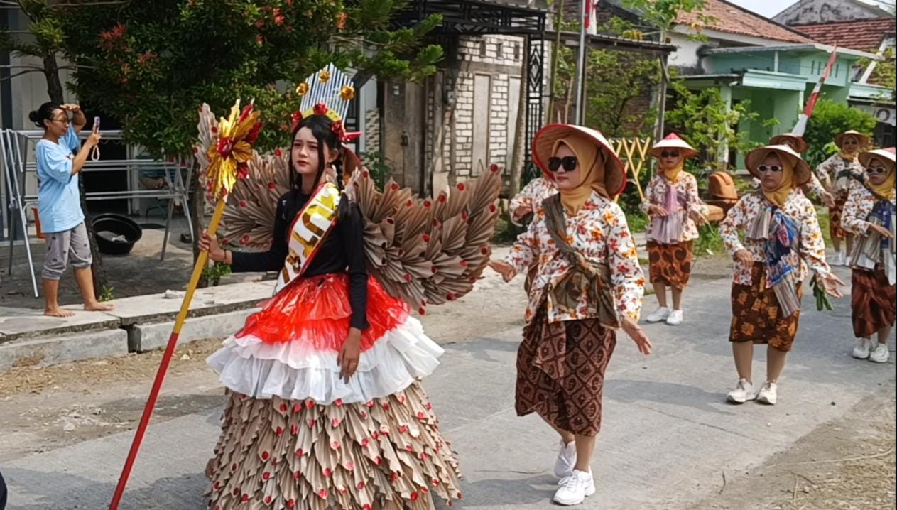 Digelar di sepanjang jalan desa dengan menempuh rute berjarak kurang lebih 2 kilometer, Minggu (24/8/2025) seluruh warga tampil dengan menampilkan kostum yang atraktif dengan tema yang berbeda. Seperti tema Mesir, Azab Illahi, Ketahanan Pangan, Pertanian, Koruptor, Alam ghaib dan lainnya yang tidak kalah menarik.
