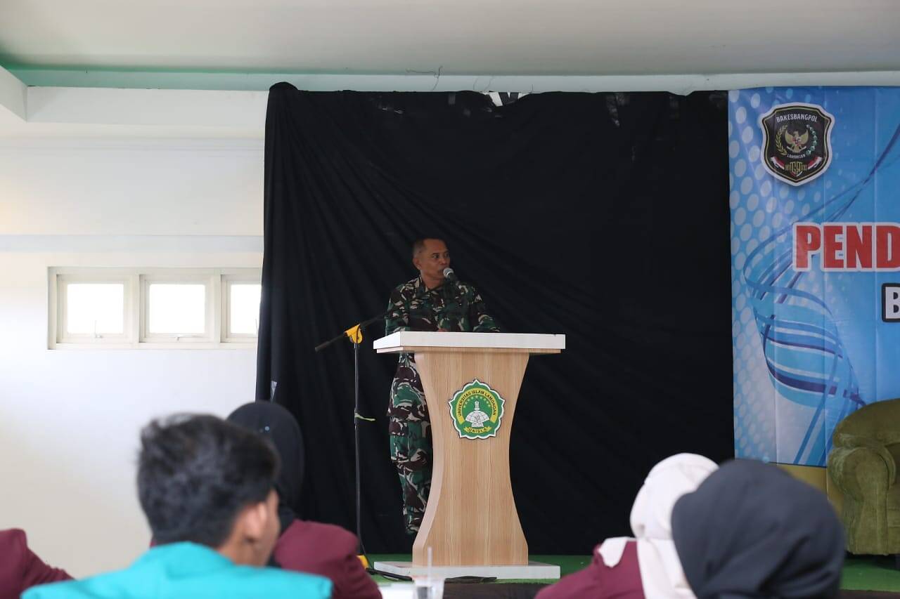 Lamongan, Kabar1News.com – Sebagai upaya dalam meningkatkan Nasionalisme dan Ideologi Pancasila, khususnya keikutsertaan dalam menjaga keutuhan Negara Kesatuan Republik Indonesia (NKRI), Kepala Staf Kodim 0812 Lamongan, Mayor Chb Heroe Goettojo memberikan pembekalan materi Wawasan Kebangsaan (Wasbang) dan Bela Negara kepada Mahasiswa Universitas Islam Lamongan (UNISLA) di Aula Unisla, Senin (21/11/2022).