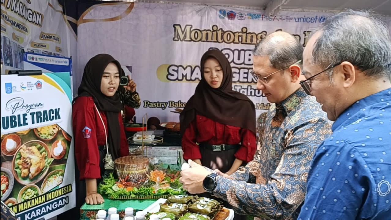 Trenggalek, Kabar1News.com – Program SMA Double Track (SMA DT) berhasil merubah bahan baku lokal dengan menghasilkan produk makanan dan minuman berkualitas unggulan seperti keripik, nastar, tart, stik sayur, jamu instan dan banyak lagi. Hasil tersebut membuktikan, jika ketrampilan tata boga yang dimiliki berhasil merubah potensi alam menjadi kesempatan potensi wirausaha berbasis kearifan lokal.