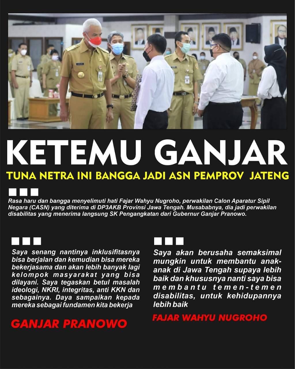 Beranda » Ketemu Ganjar, Tuna Netra Ini Bangga Jadi ASN Pemprov Jateng