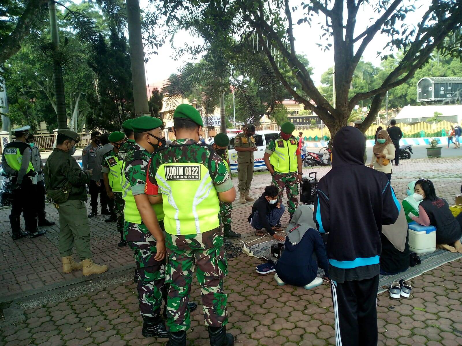 Kegiatan vaksinasi tersebut melibatkan vaksinator dari anggota Pos Kesehatan (Polkes) 05.09.15 Kodim 0822 serta tenaga kesehatan (Nakes) dari Dinas Kesehatan Bondowoso.