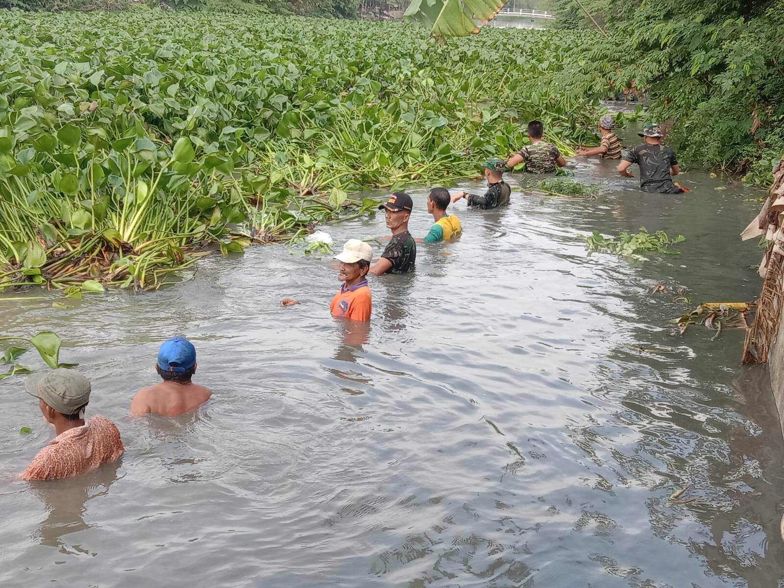 Sejumlah anggota Komando Rayon Militer (Koramil) 0812/22 Glagah, berperan aktif untuk terjun langsung ke sungai Desa Bapuhbaru kec Glagah Kab Lamongan untuk membersihkan tumbuhan eceng gondok yang menutupi permukaan sungai yang tumbuh subur sehingga dapat menghambat saluran sungai dan dapat mengakibatkan banjir di musim penghujan ini. Minggu (04/12/2022).