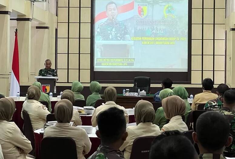 “Kegiatan ini bertujuan untuk terjaganya kelestarian, keselarasan, keserasian dan keseimbangan antara fungsi lingkungan dan pemanfaatannya,” kata Kasiter Korem 081/DSJ Letkol Inf Rudy Sujatmiko saat membacakan sambutan Danrem Kolonel Deni pada kegiatan Pembinaan Lingkungan Hidup di Aula Jenderal Sudirman Makorem, Jl. Pahlawan No. 50 Kota Madiun, Selasa (25/10/2022).