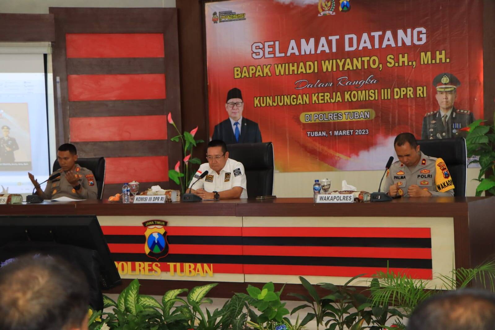 Tuban, Kabar1news.com – Masa Reses anggota Komisi III DPR-RI dari Fraksi Partai Gerindra, Daerah Pemilihan (Dapil) IX Jawa Timur (Tuban, Bojonegoro) Wihadi Wiyanto, S.H., M.H., melaksanakan kunjungan kerja ke Polres Tuban Polda Jawa timur, Rabu (01/03/2023).