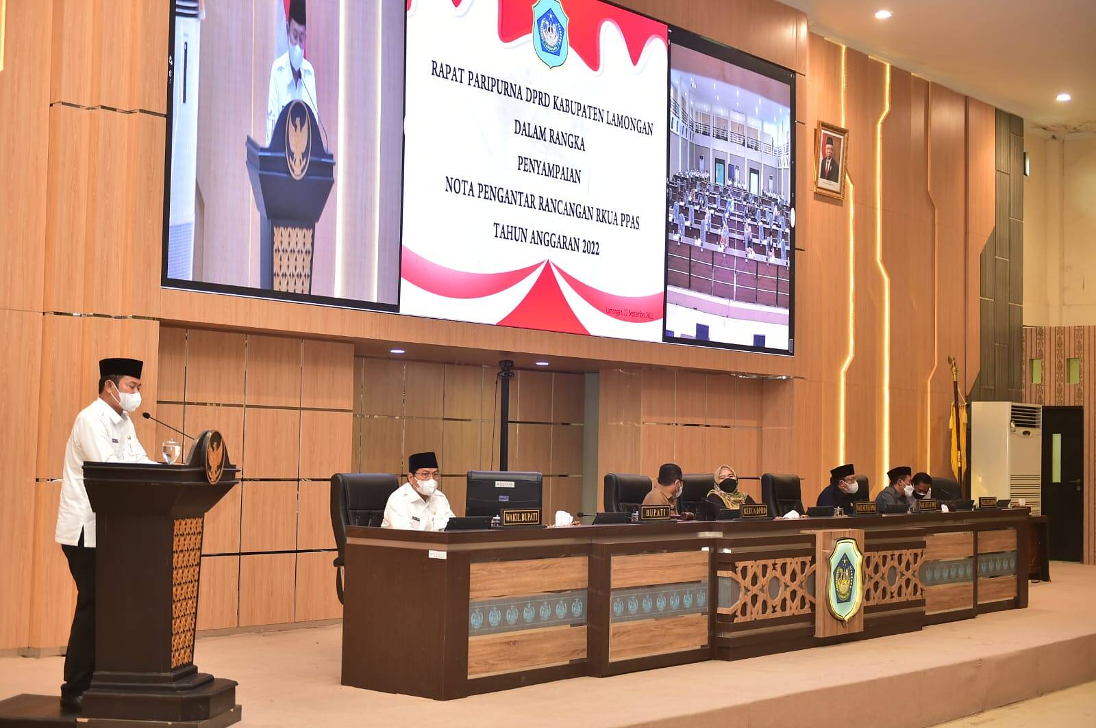 Lamongan,Kabar1News.com – Rancangan APBD Kabupaten Lamongan tahun anggaran 2022 mulai dibahas, berbeda dengan rancangan tahun sebelumnya yang lebih fokus pada penanganan Covid-19, rancangan Kebijakan Umum Anggaran (KUA) dan Program Prioritas Anggaran Sementara (PPAS) APBD Kabupaten Lamongan Tahun Anggaran 2022 akan di prioritaskan untuk pembangunan infrastruktur khususnya untuk memperbaiki jalan. Hal itu diutarakan Bupati Yes saat menyampaikan Pengantar Nota Keuangan atas Rancangan KUA dan PPAS Tahun Anggaran 2022 Kabupaten Lamongan dalam sidang paripurna DPRD Kabupaten Lamongan, Rabu (22/9).