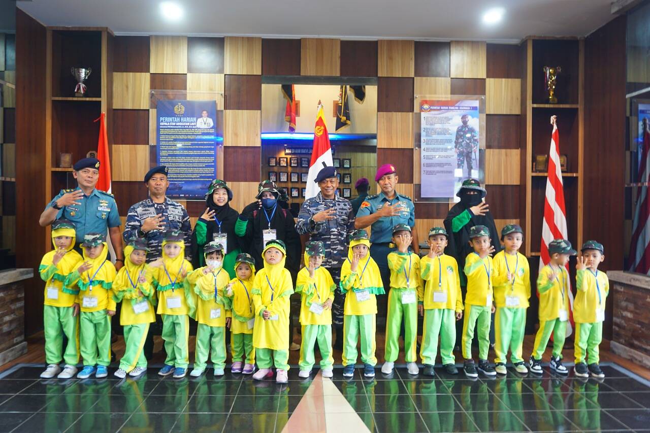 Batam, Kabar1news.com – Dalam rangka mengenalkan dunia kemaritiman sejak dini, sebanyak 15 orang siswa Taman Kanak Kanak (TK) dan Paudku Azzahra Batam melaksanakan kunjungan ke Markas Komando (Mako) Lantamal IV, Jl. Tamalatea, Tj. Sengkuang, Kec. Batu Ampar, Kota Batam, Kepulauan Riau. Rabu (25/01/2023).