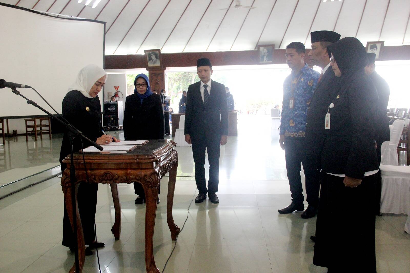 Bojonegoro, Kabar1news.com – Sebanyak 19 pejabat mengikuti prosesi pelantikan dan pengambilan sumpah/janji jabatan pada Jumat (17/3/2023) di Pendopo Malowopati Bojonegoro, Jl. Mas Tumapel No. 1 Bojonegoro. Pelantikan dilakukan langsung oleh Bupati Anna Mu’awanah.