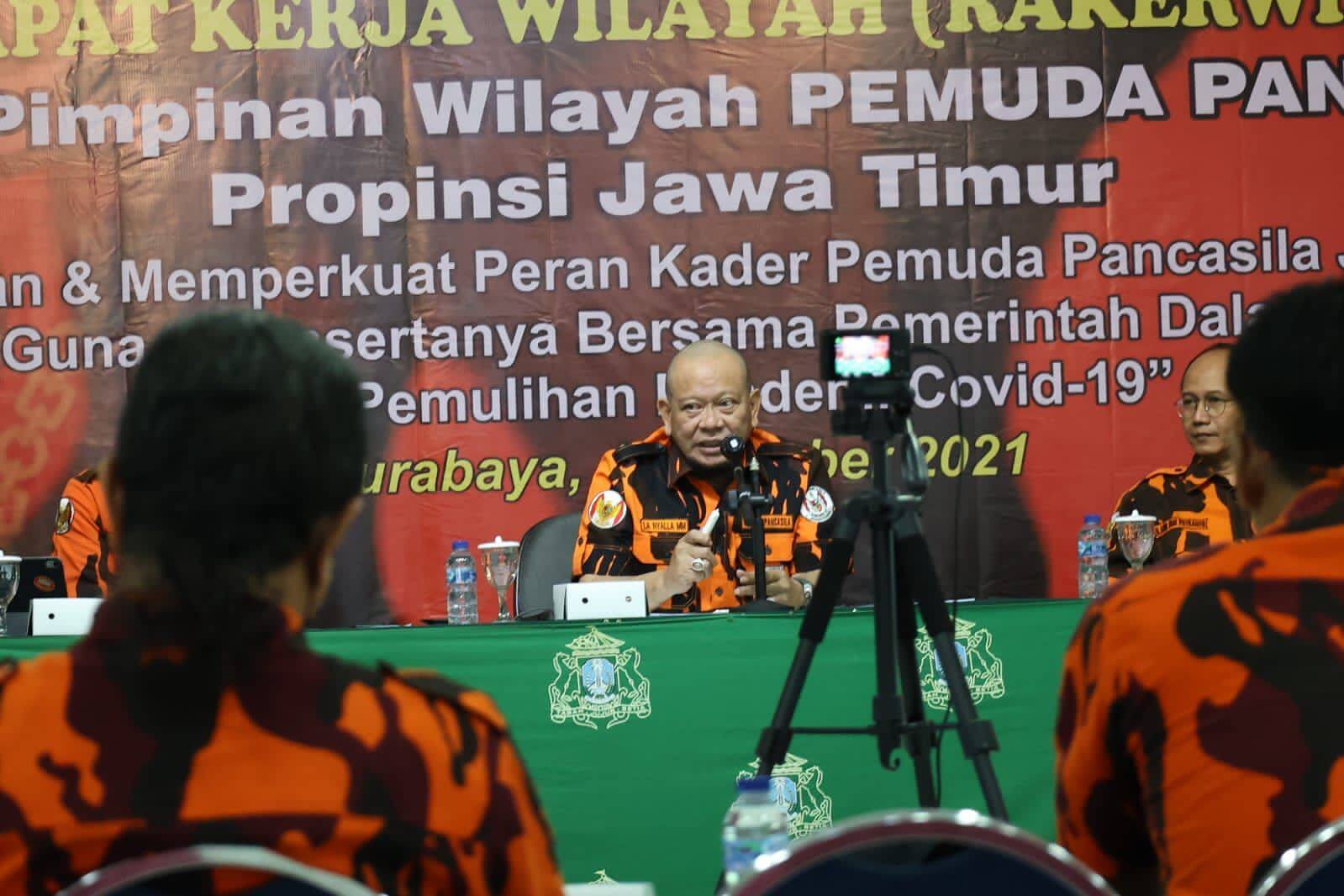 Ajakan itu disampaikan LaNyalla dalam Rapat Kerja Wilayah Pemuda Pancasila Jawa Timur di Surabaya, Minggu (10/10/2021). Rakerwil dengan tema ‘Menegaskan dan Memperkuat Peran Serta Pemuda Pancasila Jawa Timur bersama Pemerintah dalam Upaya Pemulihan Pandemi Covid-19’, diikuti Ketua MPC se-Jawa Timur dan kader lainnya.