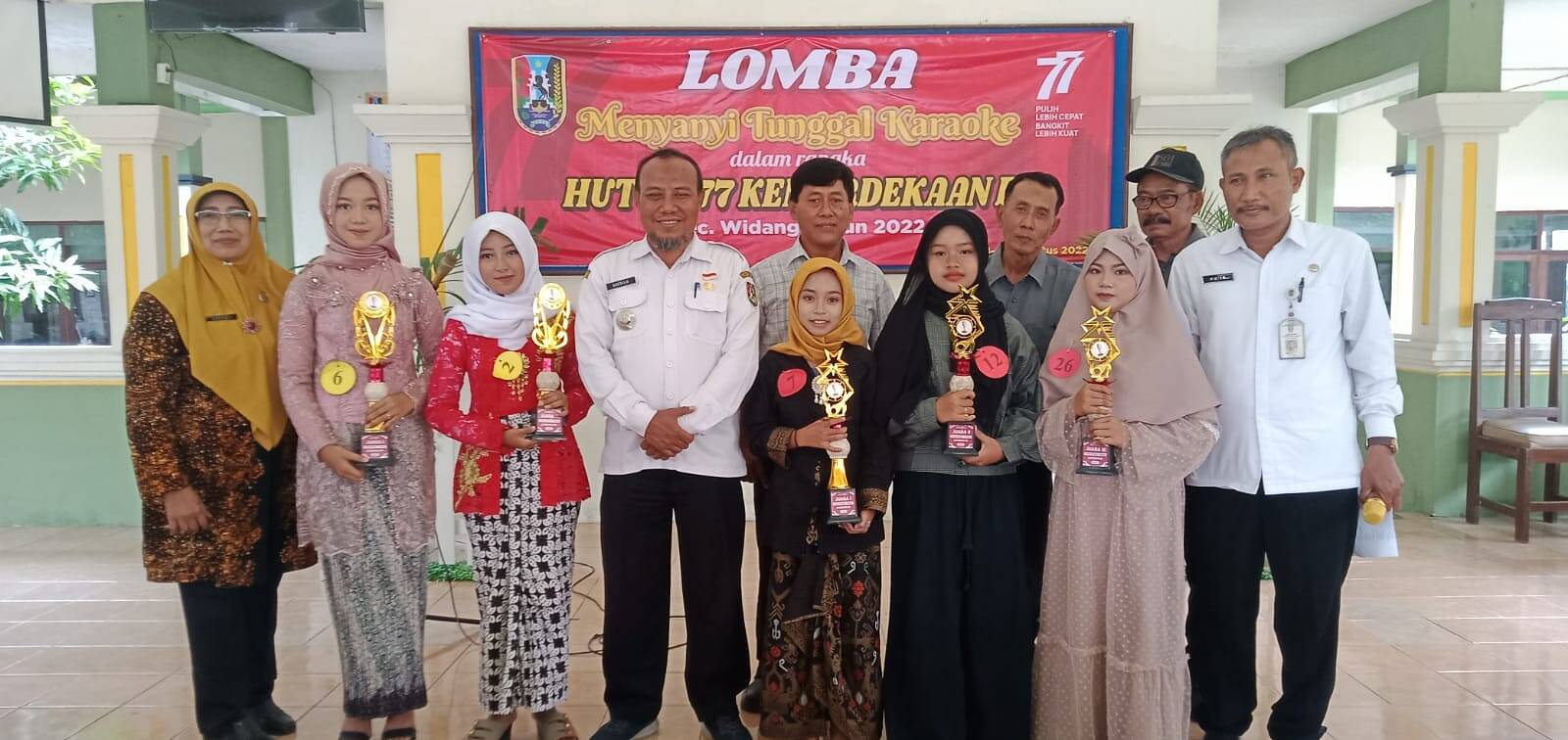 Tuban, Kabar1News.com – Dalam Rangka memperingati dan menyematkan Hari Ulang Tahun (HUT) ke-77 Kemerdekaan Republik Indonesia (RI), Panitia Peringatan Hari Besar Nasional (PHBN) Kecamatan Widang Kabupaten Tuban Provinsi Jawa Timur, Seksi Bidang Seni Menggelar Lomba Menyanyi Tunggal Karaoke tingkat SD/MI, SMP/MTs dan Umum di Pendopo Kecamatan setempat, (24-25/8/2022) pagi.