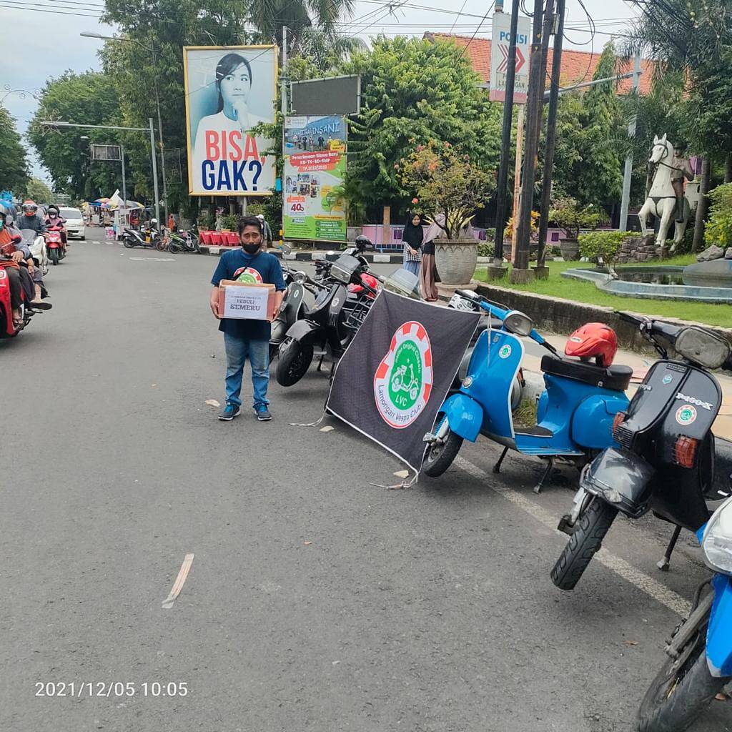 Lamongan, kabar1news.com – Hari ini Rekan-rekan Komunitas Lamongan Vespa Club (LVC) melakukan aksi sosial, “Peduli Semeru,” puluhan anggota pengemar motor Vespa itu dengan sigap dan cepat turun langsung ke jalan untuk menggalang bantuan bagi masyarakat terdampak erupsi gunung Semeru di Lumajang, Jawa Timur. Kegiatan yang di mulai dari pagi sampai menjelang sore hari itu dilakukan dengan bergantian oleh seluruh anggota LVC kabupaten Lamongan, Minggu (5/12/2021).