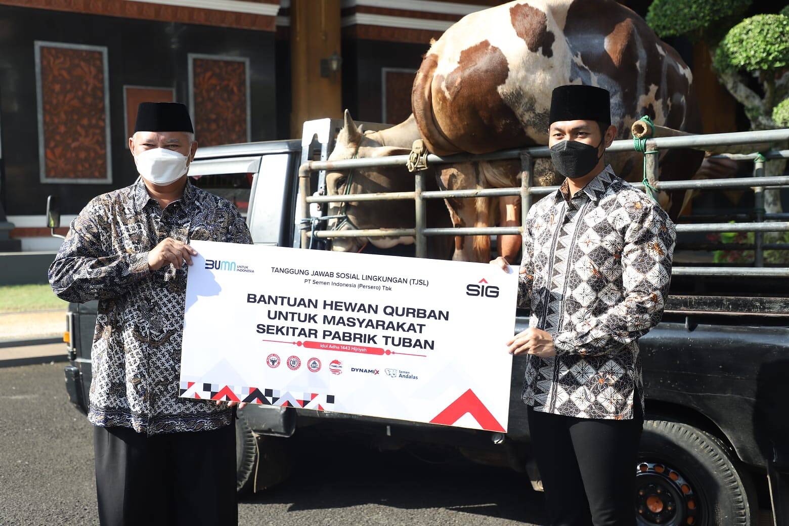 Pada kesempatan ini Mas Bupati secara simbolis menerima bantuan hewan kurban dari beberapa perusahaan yang akan dibagikan kepada masyarakat Kabupaten Tuban.