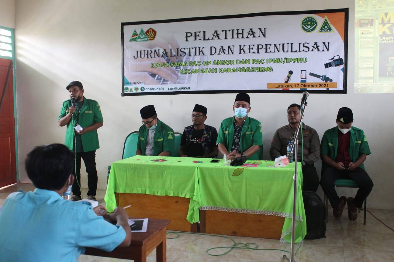Lamongan, kabar1news.com – Dalam rangka memperingati hari santri nasional 2021 PAC GP. ANSOR Karanggeneng menggelar pelatihan jurnalistik dan kepenulisan. Di mulai dari pukul 13.00-17.15 wib, Bertempat di SMP 45 Latukan Kecamatan Karanggeng Lamongan, Yang dihadiri pemuda pemudi ansor dan kaum millennial dan ada juga yang berasal dari tim media. Minggu (17/10/2021)