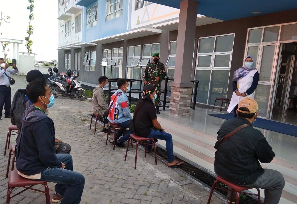 Perwira Pengawas Kodim 0812 Lamongan beserta anggota jajaran kodim 0812 Lamongan Lettu Inf Sobar Atnanto bersama anggota dan Tim Medis dari Dinas Kesehatan Kabupaten Lamongan melaksanakan pengawasan terhadap duabelas orang PMI, di tempat Rusunawa ASN Lamongan Jl Veteran Kel Jetis Kec/Kab Lamongan, Jawa Timur, Selasa (15/6/2021).