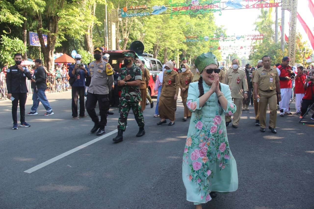 “Jika kelelahan, sebaiknya jangan dipaksakan. Yang penting partisipasinya,” ujar Bupati saat sambutan sesaat sebelum pemberangkatan peserta pawai.