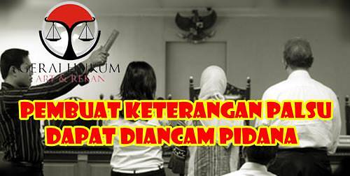 Jakarta, kabar1news.com – Gerai Hukum Art & Rekan jakarta berpendapat bahwa ,terkait dengan kejadian yang terjadi dan dialami, apabila memang hal yang dilaporkan oleh seseorang tidak terjadi, maka ada pidana yang dapat dikenakan terhadap orang yang memberikan keterangan palsu sebagaimana diatur dalam Bab IX tentang Sumpah Palsu dan Keterangan Palsu, Pasal 242 ayat (1) Kitab Undang-Undang Hukum Pidana (“KUHP”), barang siapa dalam keadaan di mana undang-undang menentukan supaya memberi keterangan di atas sumpah atau mengadakan akibat hukum kepada keterangan yang demikian, dengan sengaja memberi keterangan palsu di atas sumpah, baik dengan lisan atau tulisan, secara pribadi maupun oleh kuasanya yang khusus ditunjuk untuk itu, diancam dengan pidana penjara paling lama tujuh tahun.