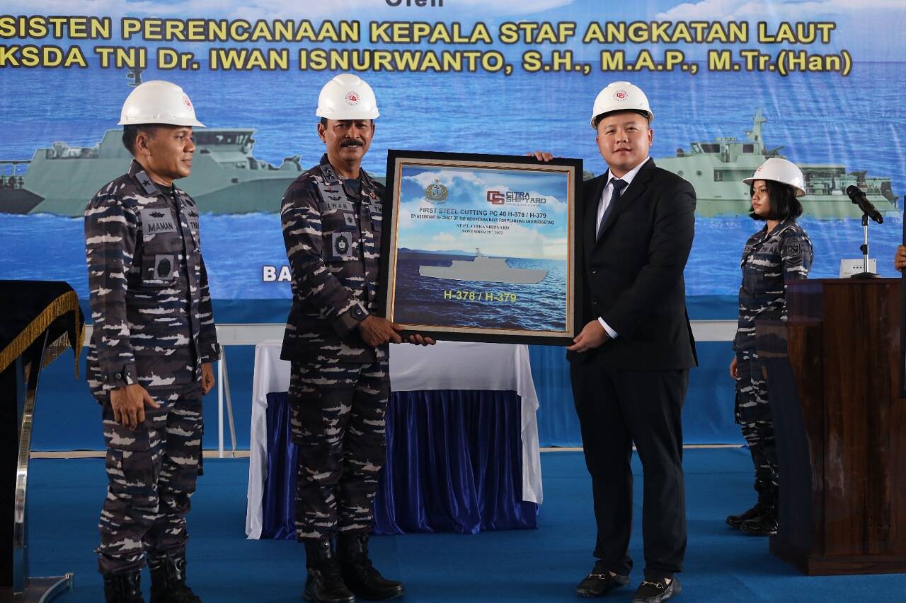 Hal tersebut disampaikan Asrena Kasal Laksda TNI Dr. Irwan Isnurwanto, S.H., M.A.P., M.Tr.(Han), dalam sambutan acara First Cutting dan Keel laying Pembuatan Kapal PC 40 dan KAL 28 di galangan PT Citra Shipyard Batam, Kepulauan Riau Selasa, (29/11/2022).