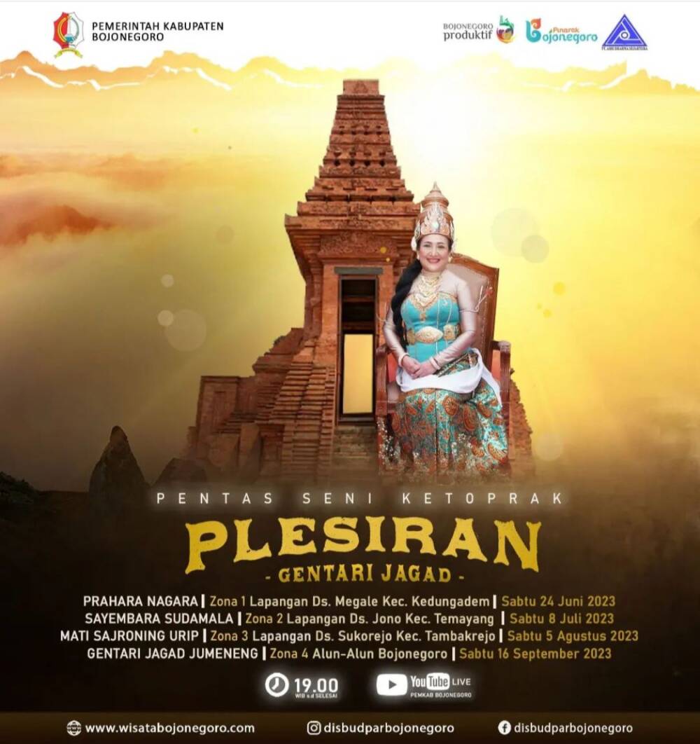 Bojonegoro, Kabar1news.com – Pemerintah Kabupaten Bojonegoro, melalui Dinas Kebudayaan dan Pariwisata (Disbudpar) akan menggelar pentas seni Ketoprak Plesiran ‘Gentari Jagat’. Pentas seni untuk menghibur masyarakat ini digelar di empat zona setiap akhir pekan.