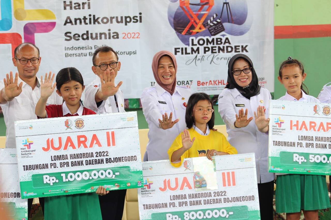 Sekretaris Daerah Kabupaten Bojonegoro Nurul Azizah menyampaikan, Pemkab Bojonegoro terlibat dalam membangun integritas anak bangsa melalui kegiatan di sekolah-sekolah yang dilaksanakan oleh Inspektorat dengan berbagai lomba. Untuk tahun ini, peringatan Hakordia melalui lomba film pendek tentang antikorupsi dan game Integrity Goals yang diikuti siswa-siswa SD.