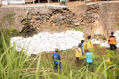 “Kita mengerjakan titik-titik ini karena melihat historinya, yaitu jika terjadi curah hujan tinggi, pada titik-titik tersebut akan mengalami peningkatan debit air yang cukup signifikan. selain itu kita juga menyiapkan tanggul dan plengsengan sementara, karena ada di beberapa titik juga yang karena tanah ambles jadi plengsengannya rusak.” imbuh Indun.