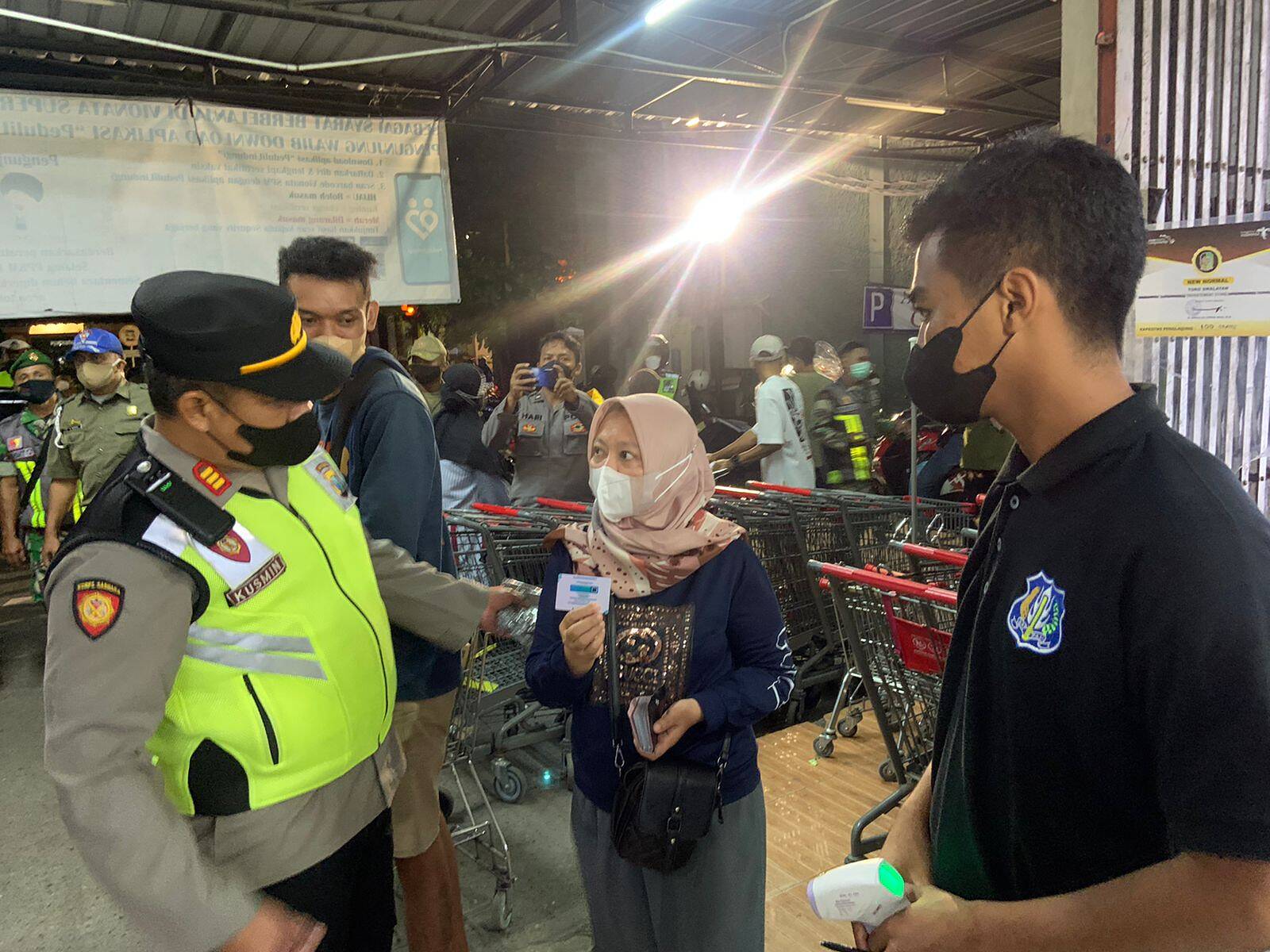“Selain pengawasan tentang berdisiplin masyarakat dalam menerapkan protokol kesehatan, Tim ‘Pamor Keris’ Polresta Banyuwangi juga mensosialisasikan tentang aplikasi peduli lindungi,” ujar Kompol Idham.