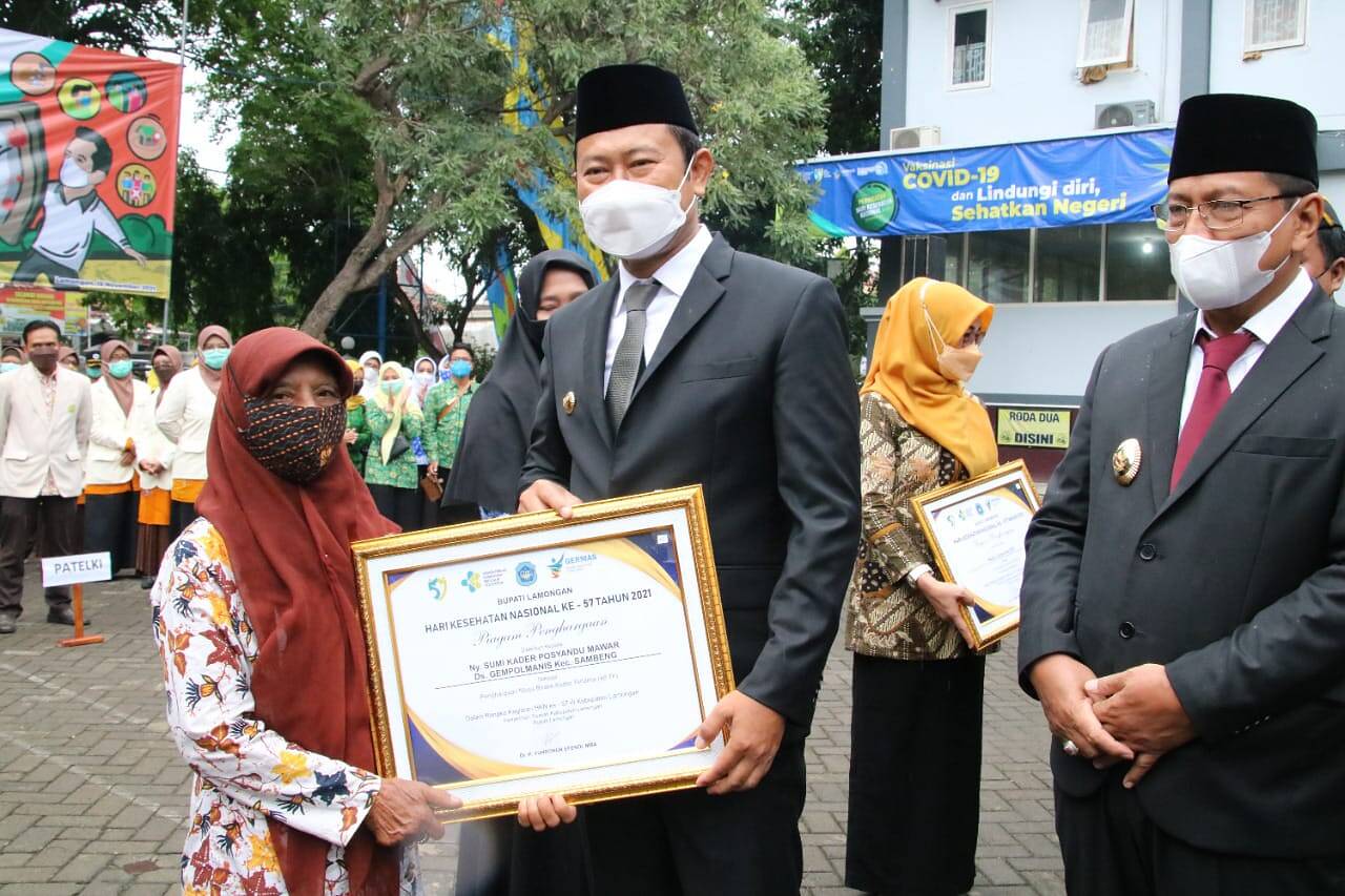 Lamongan, kabar1news.com – Peringati Hari Kesehatan Nasional (HKN) yang ke-57, Senin (15/11) di Halaman Kantor Dinas Kesehatan Kabupaten Lamongan, Bupati Lamongan Yuhronur Efendi memberikan apresiasi kepada seluruh insan kesehatan Lamongan, utamanya dalam hal penanganan covid-19.