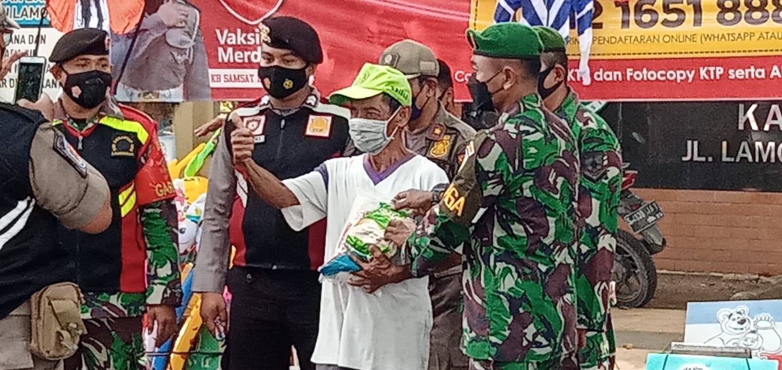 Kegiatan pembagian masker dan Sembako ini di lakukan oleh anggota TNI jajaran Kodim 0812 Lamongan dan Polres Lamongan serta pemerintah daerah