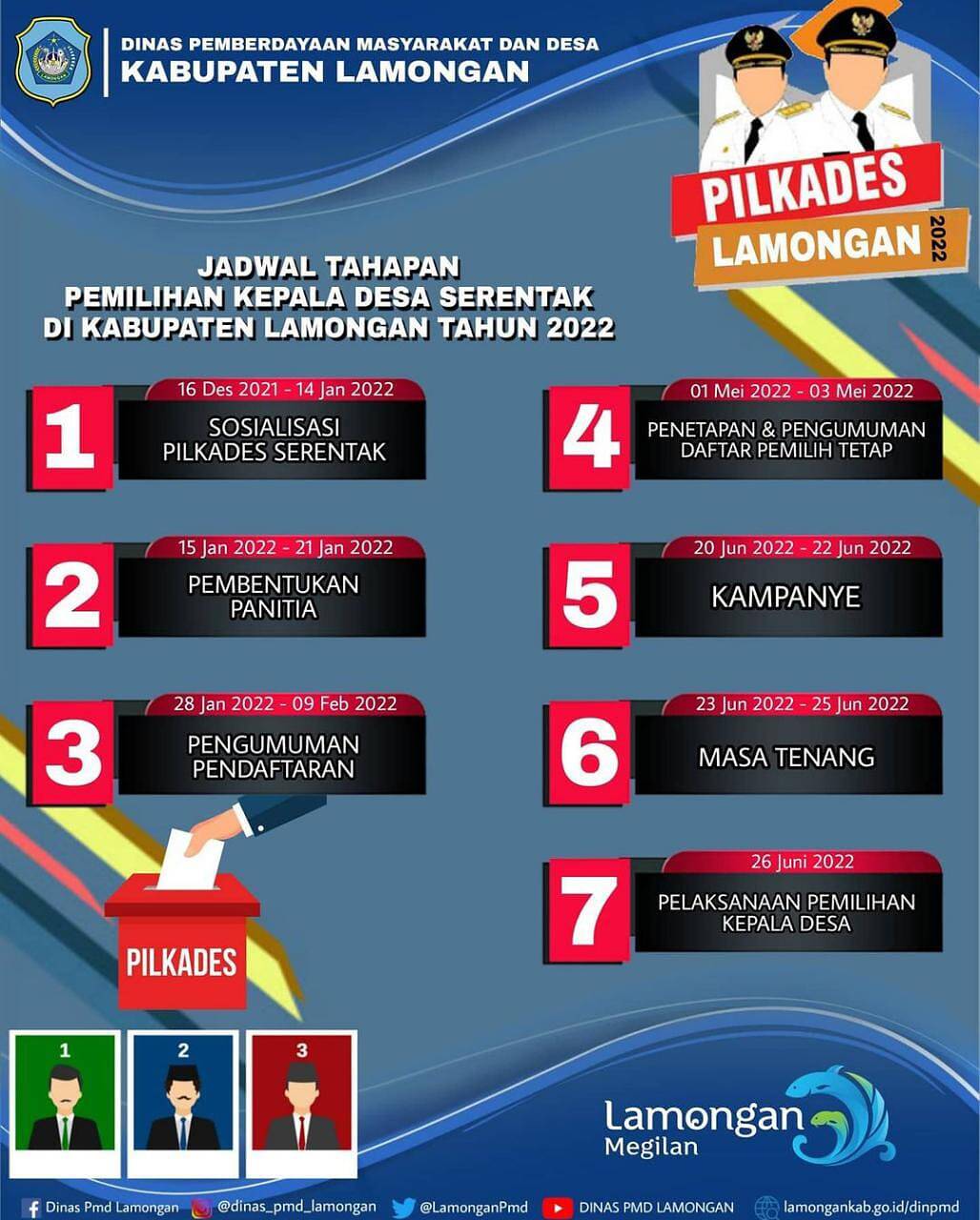Sebagai pengetahuan, Sesuai data yang telah dihimpun Dinas Pemberdayan Masyarakat dan Desa (PMD) Kabupaten Lamongan tercatat 62 desa yang akan melaksanakan Pilkades serentak pada Juni tahun 2022 nanti, puluhan desa tersebut tersebar di 24 kecamatan kecuali Kecamaatan Modo, kecamatan Sambeng dan kecamatan Lamongan.