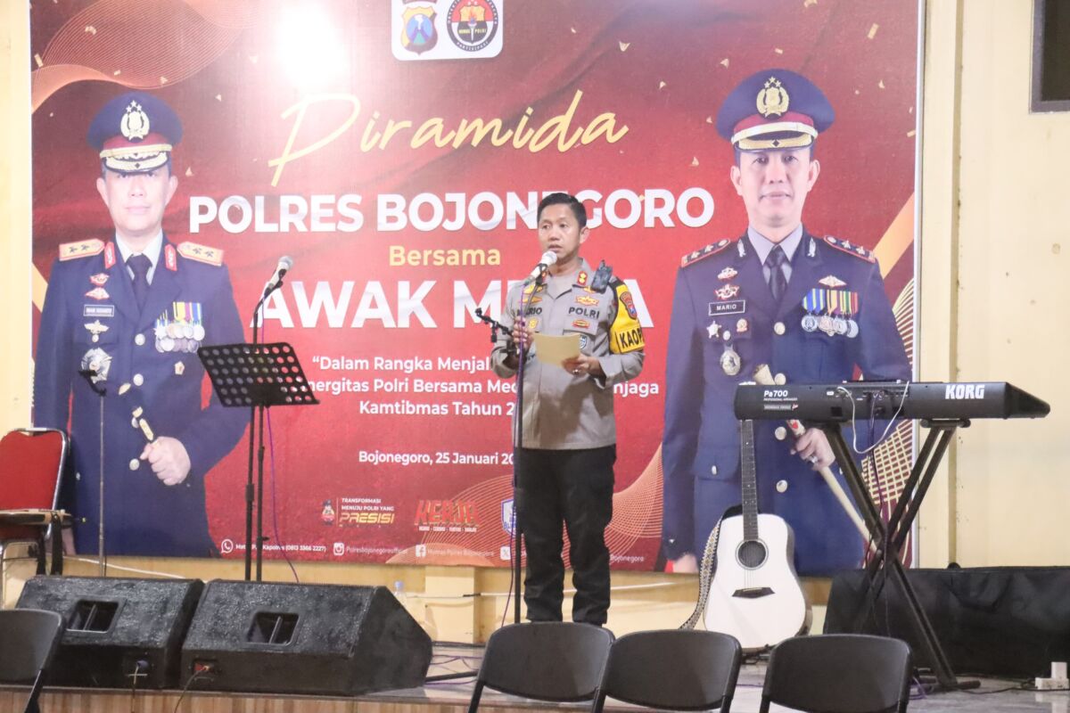 Piramida ini dihadiri Kapolres Bojonegoro, AKBP Mario Prahatinto, S.H., S.I.K., M.Si, Wakapolres, para pejabat utama serta awak media baik elektronik, cetak, online yang tergabung Pokja Polres Bojonegoro.