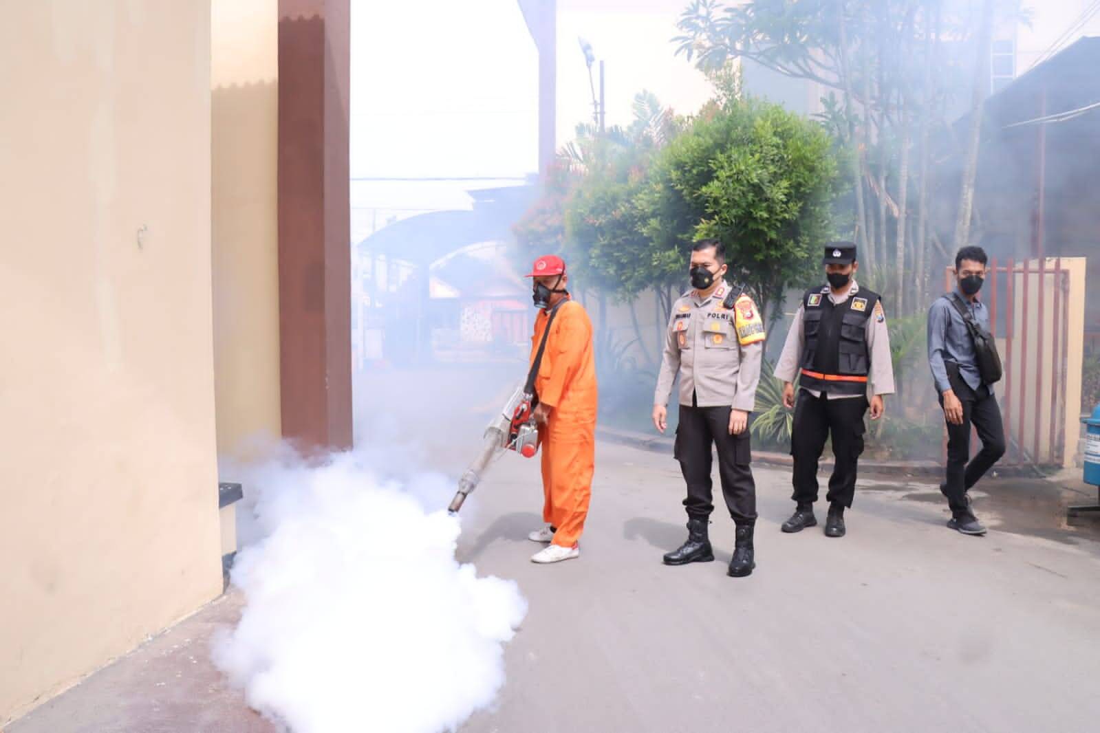 Kapolres Bojonegoro AKBP Muhammad yang memimpin langsung fogging di lingkungan Mapolres Bojonegoro mengungkapkan, pelaksanaan Fogging serentak se-Kabupaten Bojonegoro bertujuan untuk mencegah terjadinya penularan Demam Berdarah Dengue (DBD).