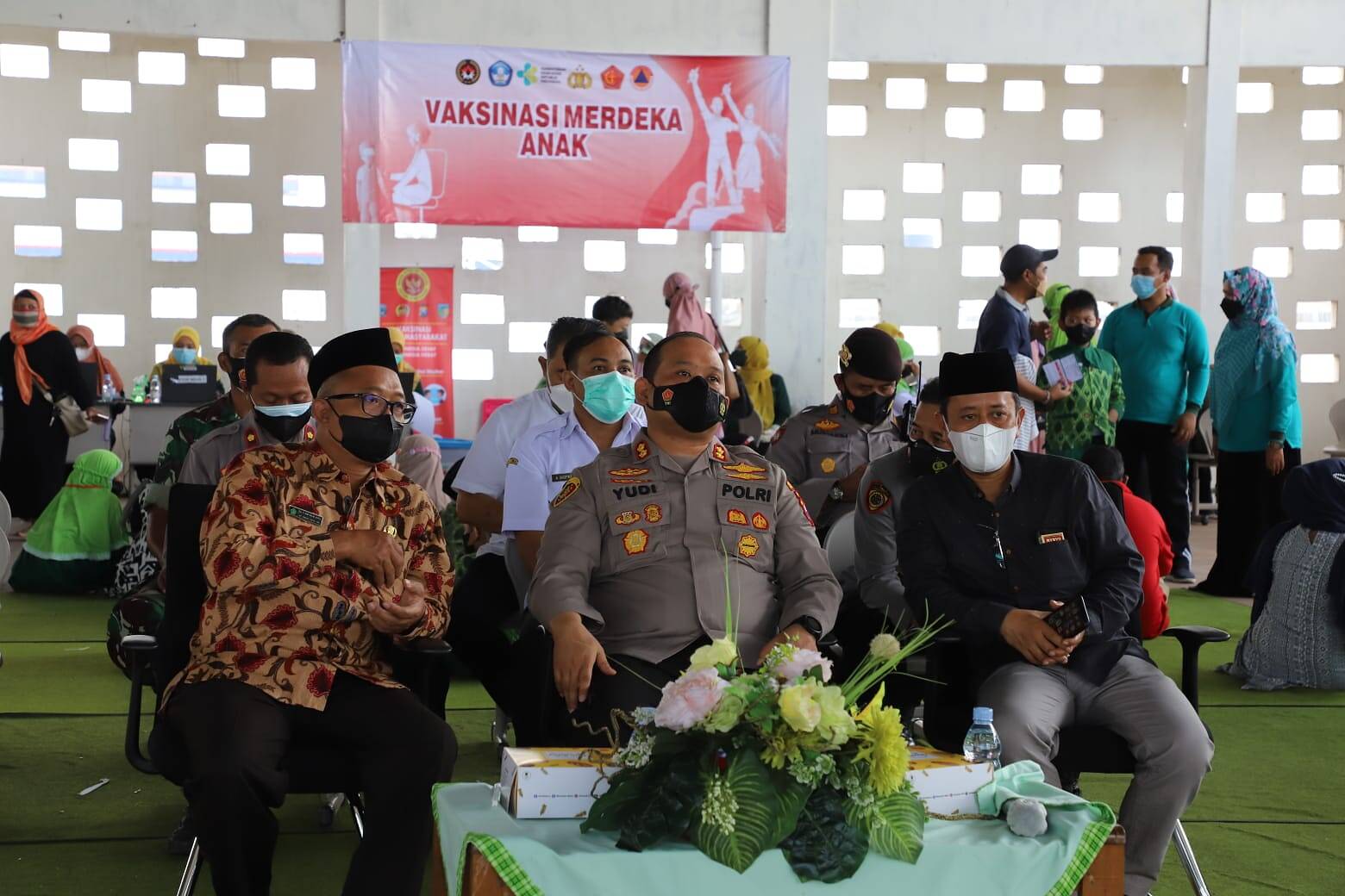 Kapolres Kediri Kota AKBP. Wahyudi, S.I.K.,M.H. Didampingi Pejabat Utama Polres Kediri Kota meninjau secara langsung dan mengikuti secara virtual kegiatan vaksinasi Merdeka khusus anak 6 – 11 tahun di Sekolah Dasar Islam Al Huda 2 Kota Kediri.