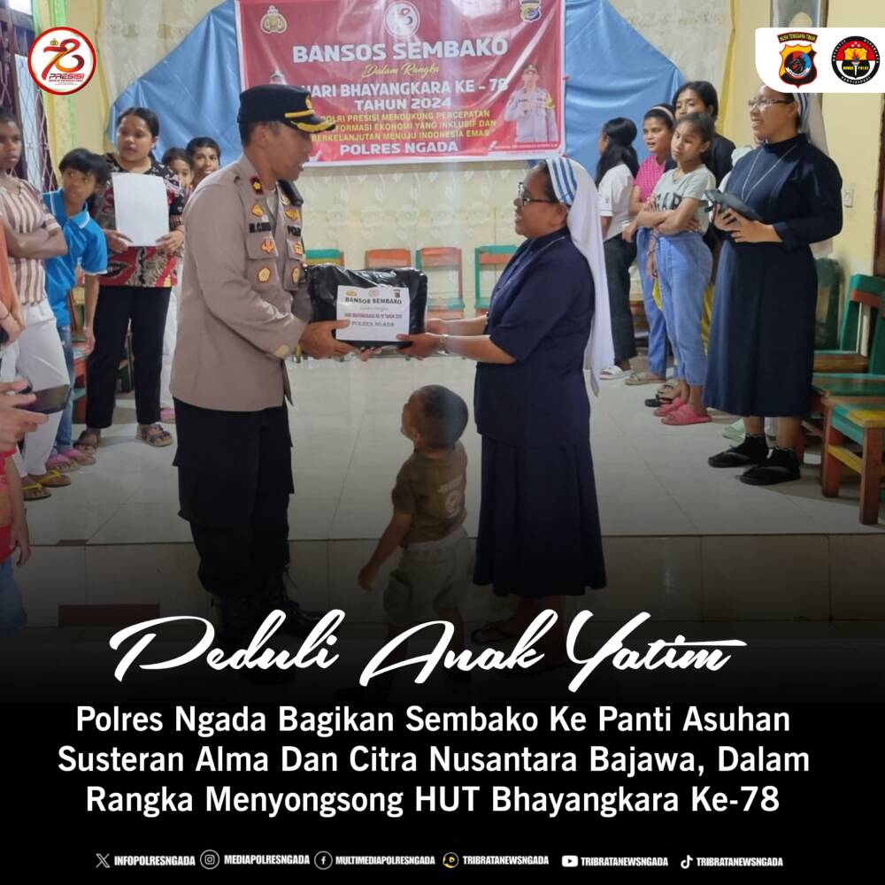 Bantuan Sosial yang dilaksanakan oleh Polres Ngada dan jajarannya diberikan khusus kepada penghuni panti asuhan dan Disabilitas, yang berada di Yayasan Citra Nusantara Ngada dan Panti Asuhan Susteran Alma Bajawa