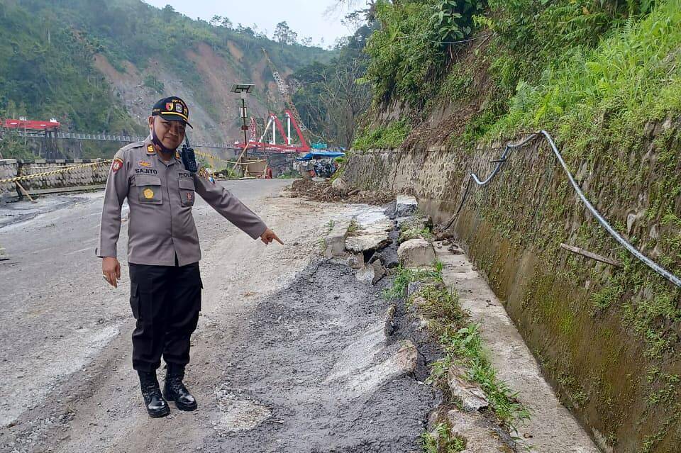 “Hari ini kami bersama anggota melakukan pengecekan dan pemantauan badan jalan mengalami keretakan serta penurunan tanah,” kata Kapolsek Candipuro AKP Sajito.