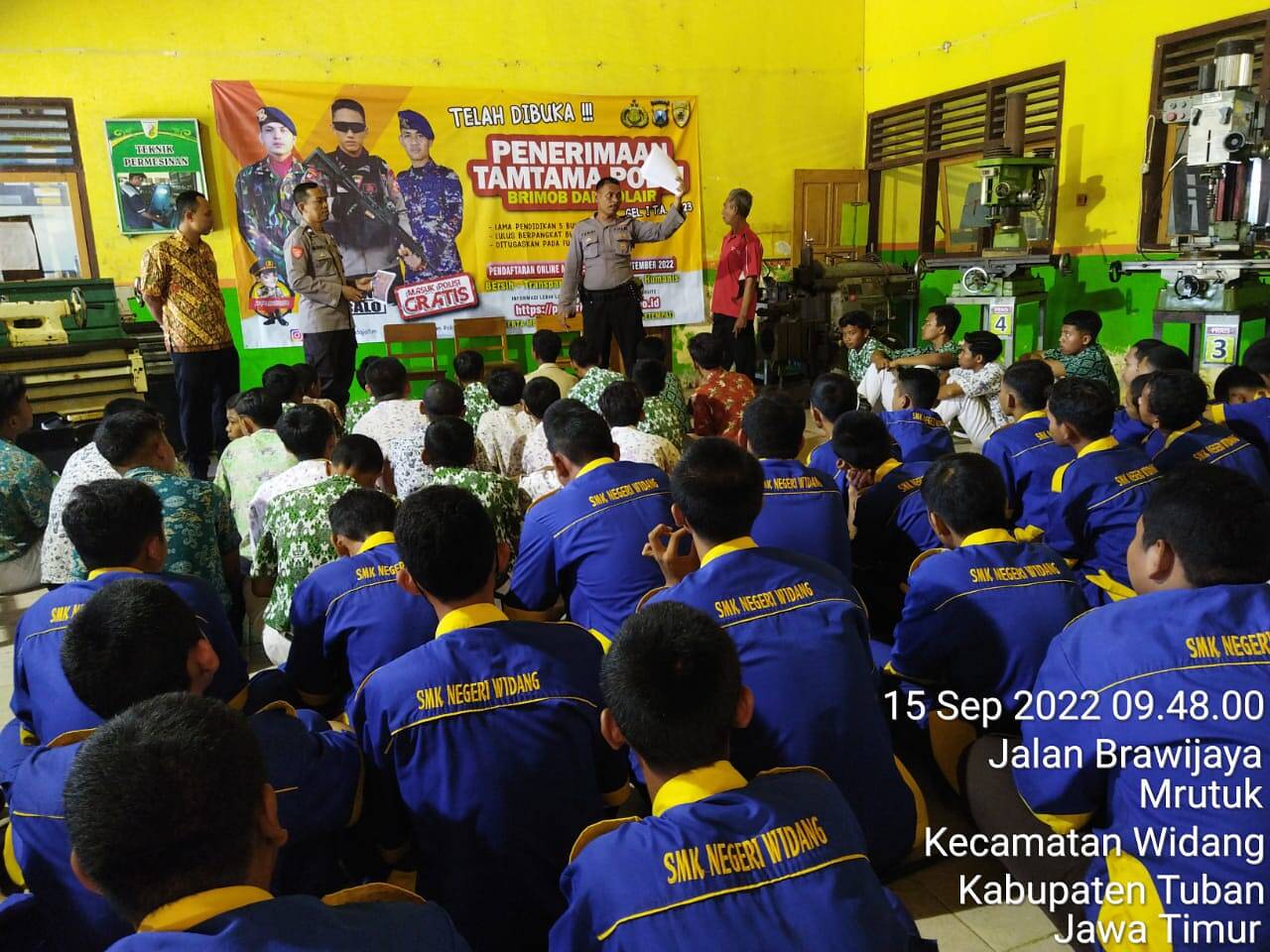 Tuban, Kbara1News.com – Mensukseskan Penerimaan Polri TA 2022, Polsek Widang melaksanakan sosialisasi penerimaan Tamtama Tahun 2022 di SMKN Widang yang berada di Desa Mrutuk Kecamatan Widang Kabupaten Tuban Jawa Timur, Kamis (15/09/2022).