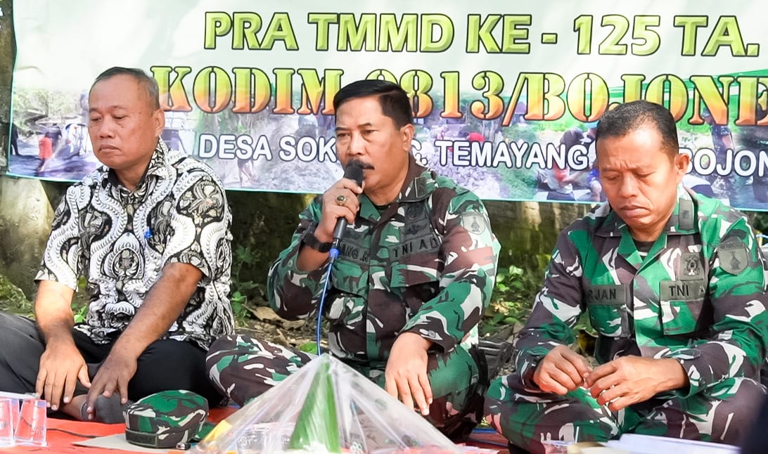 Sebelum dilaksanakannya program yang mengusung tema ‘Dengan Semangat TMMD Mewujudkan Pemerataan Pembangunan Berkelanjutan dan Ketahanan Nasional di Wilayah’ jajaran TNI Kodim 0813 Bojonegoro menggelar kegiatan Pra- TMMD di Desa Soko Kecamatan Temayang Kabupaten Bojonegoro.