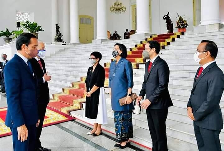 Presiden Jokowi yang tampak mengenakan setelan jas berwarna biru menyambut kedatangan PM Dato’ Sri Ismail Sabri Yaakob, untuk selanjutnya menuju halaman Istana Kepresidenan Bogor guna melaksanakan upacara penyambutan secara resmi.