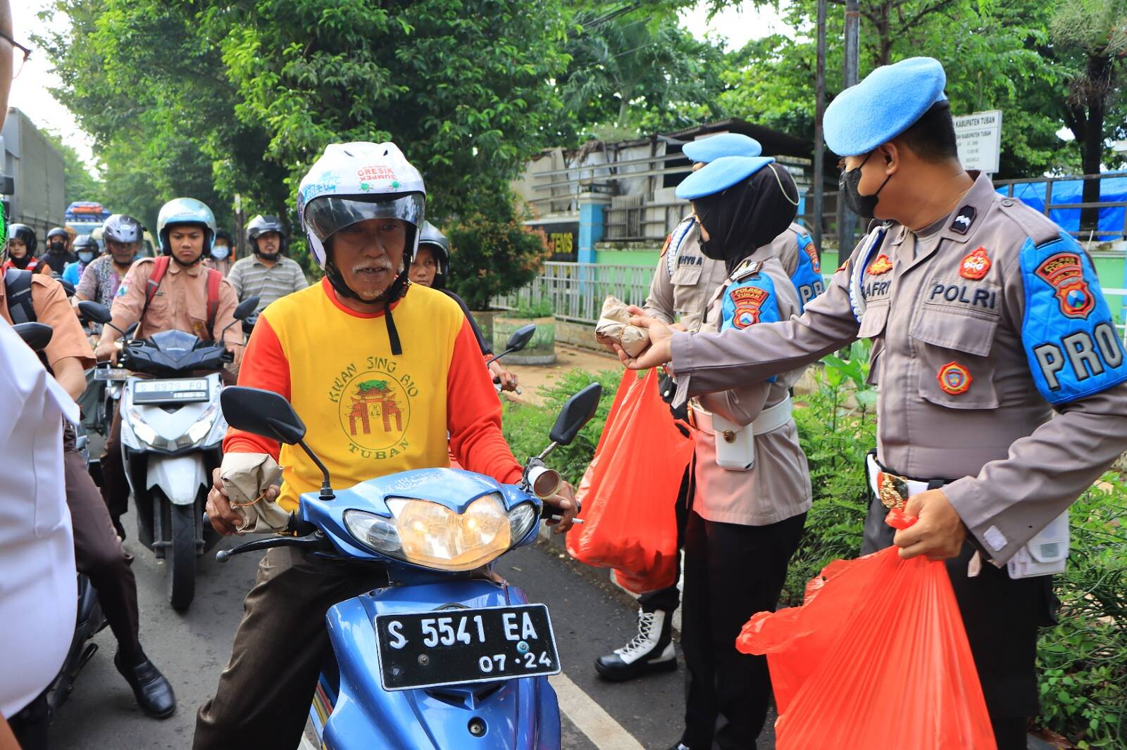 Program Sedekah Berkah, Polres Tuban Berbagi Nasi Gratis