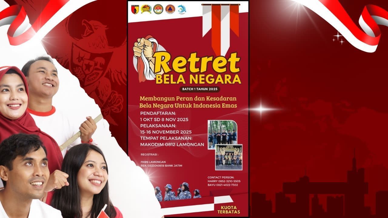 Lamongan, Kabar1News.com – Dalam rangka mempersiapkan generasi tangguh yang siap menyongsong Indonesia Emas 2045, Forum Komunikasi Bela Negara (FKBN) Kabupaten Lamongan kembali menggelar Retret Bela Negara Batch 1 Tahun 2025. Dengan mengusung tema “Membangun Peran dan Kesadaran Bela Negara untuk Indonesia Emas”, kegiatan yang akan berlangsung pada 15-16 November 2025 di Makodim 0812 Lamongan ini terbuka untuk umum. Pendaftaran telah dibuka sejak 1 Oktober dan akan berakhir pada 8 November 2025, memberikan kesempatan seluas-luasnya bagi seluruh elemen masyarakat, dari pelajar, mahasiswa, hingga profesional muda, untuk turut serta membangun fondasi kecintaan pada tanah air.