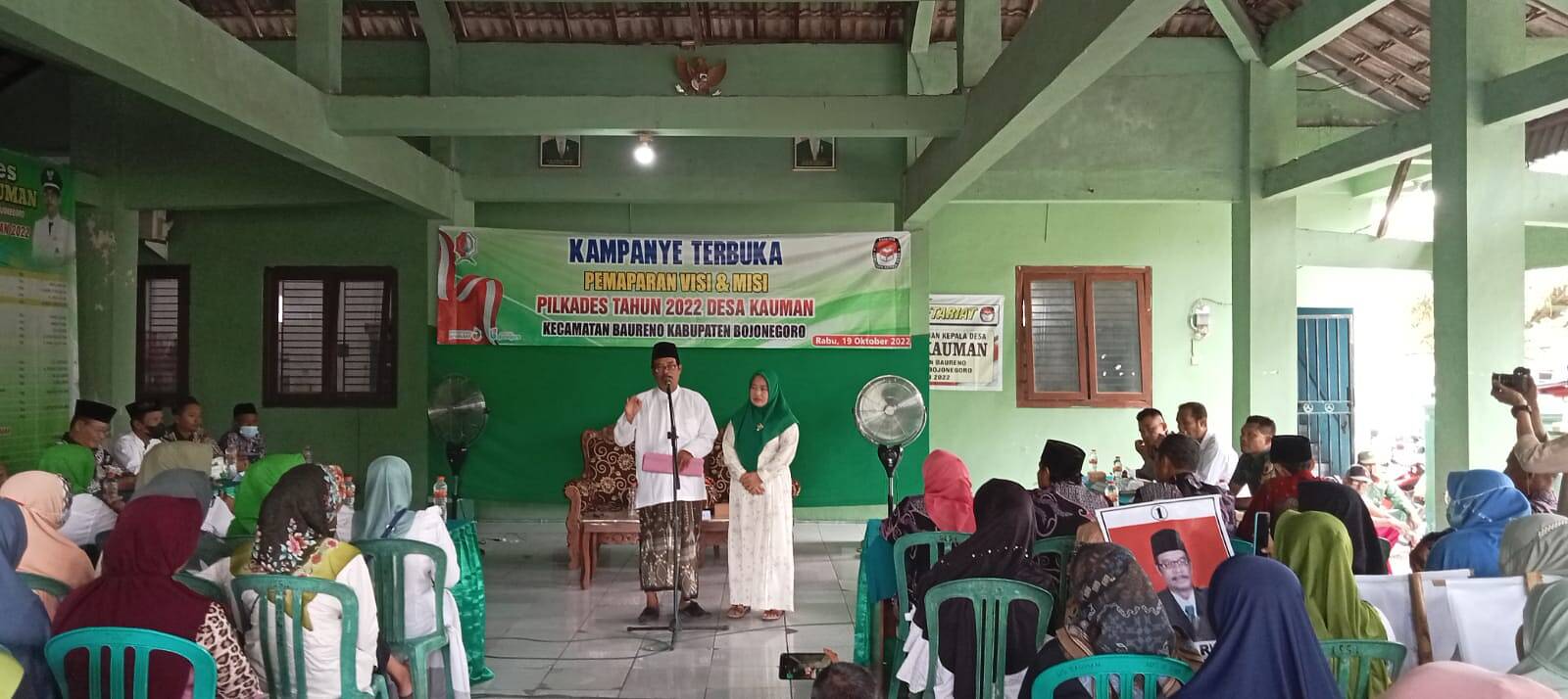 Bojonegoro, Kabar1News.com – Memasuki tahapan kampanye terbuka (menyampaikan visi dan misi), Rokis Riskon (incumbent) Calon Kepala Desa (Cakades) nomor 1, Desa Kauman Kecamatan Baureno Kabupaten Bojonegoro Provinsi Jawa Timur, menyampaikan visi misinya dengan Jargon “MAPAN” (Maju, Adil, Peduli, Aman dan Nyaman), di Balai Desa setempat. Rabu (19/0/2022) pagi.