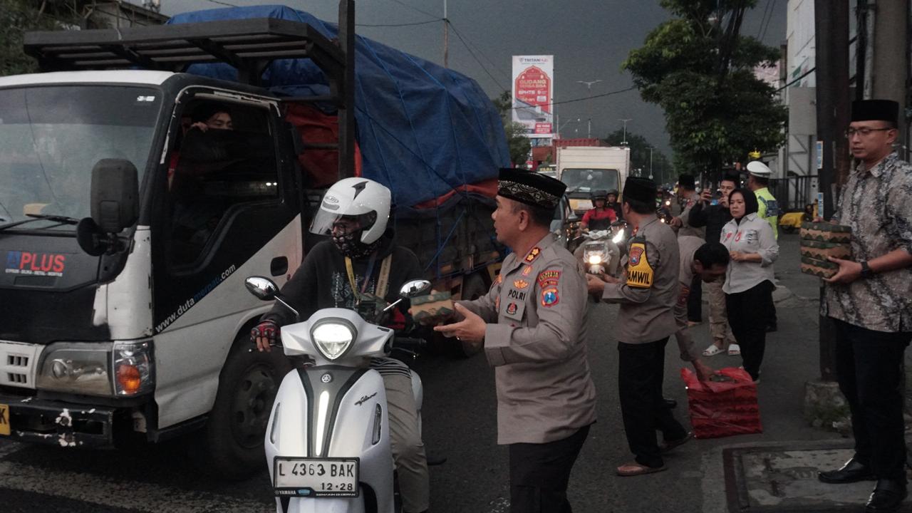 Safari Ramadan, Polresta Sidoarjo Berbagi Takjil di Perempatan Gedangan.
