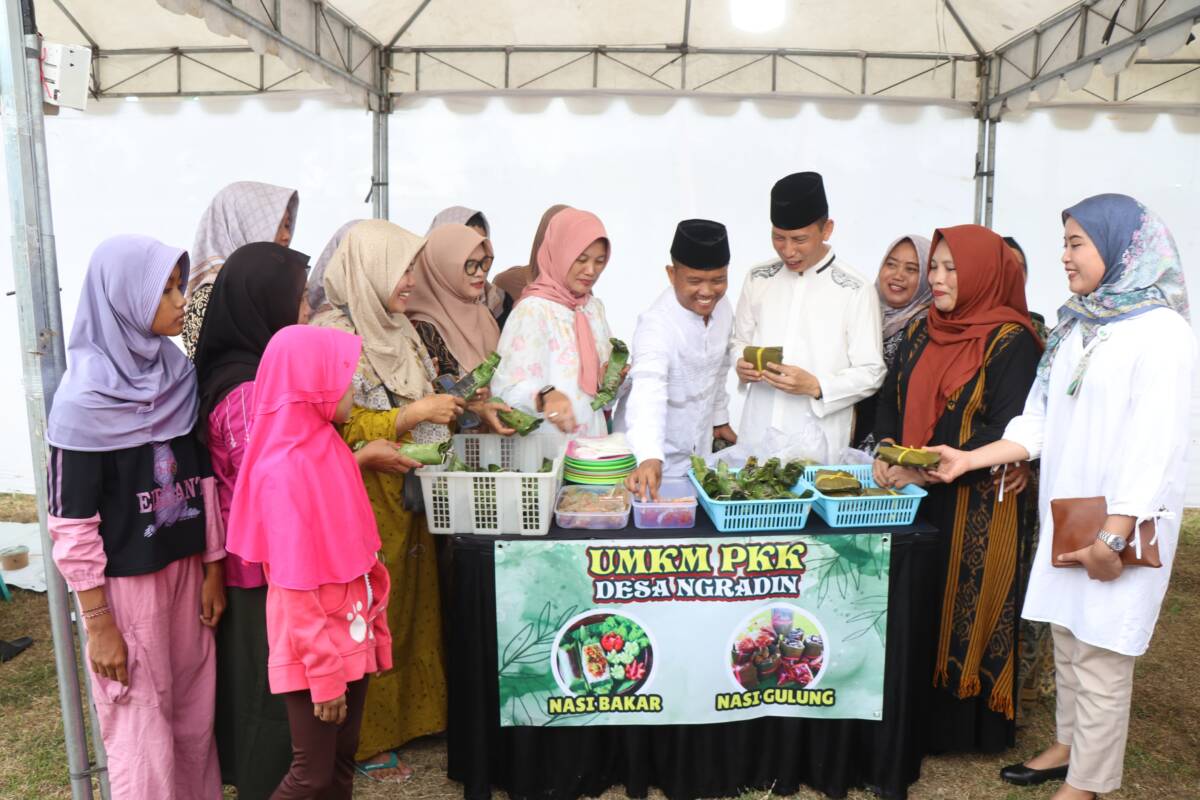Tampak Wabub Bojonegoro tersebut menyapa dan bercengkerama dengan pelaku UMKM. Memperbincangkan perkembangan perekonomian sektor UMKM. Sesekali Nurul Azizah tertarik dan membeli produk UMKM yang dijajakan, seperti Sego Gulung khas Bojonegoro made in Desa Ngradin, minuman kekinian yang diinovasikan sedemikian rupa, hingga kreasi cemilan masyarakat desa Ngeradin.