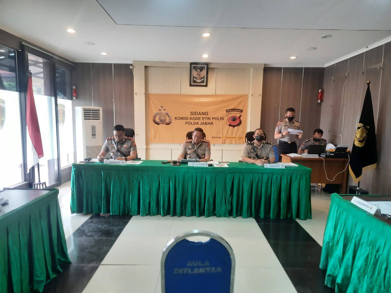Ditempat terpisah, Dua anggota Polisi Polda Jabar, menjalani sidang kode etik, di ruang sidang Bid Propam Polda Jabar, Jumat (2/9/2022).