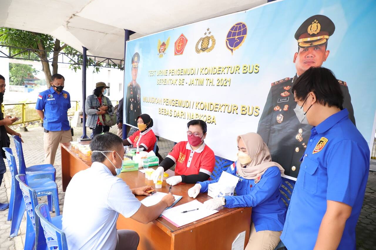 Sat Resnarkoba Polres Kediri Kota Lakukan Tes Urine Pada Supir dan Kondektur Bus Antisipasi Libur Natal 2021 Dan Tahun Baru 2022
