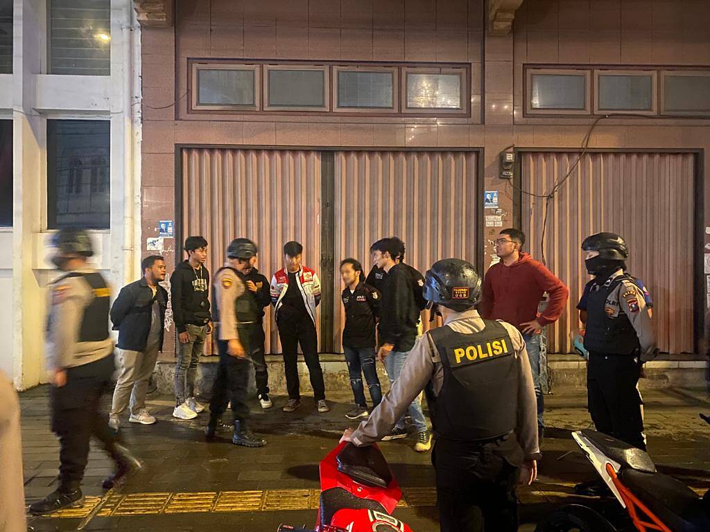 Sat Samapta Polrestabes Medan Dan BKO Poldasu, Bubarkan Kerumunan Anak Muda Mudi Di Trotoar Jalan