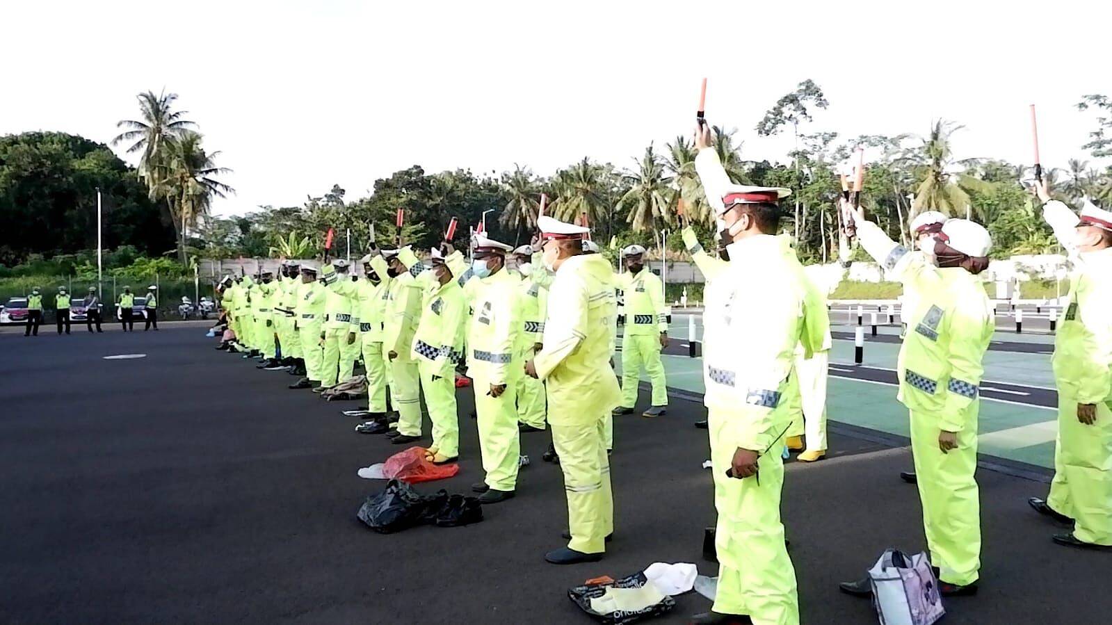 Tak hanya kendaraan, peralatan yang digunakan oleh petugas pun dicek. Mulai HT, stick lamp hingga jas hujan. Selain itu, aplikasi lainnya pun juga dicek untuk kesiapan petugas.