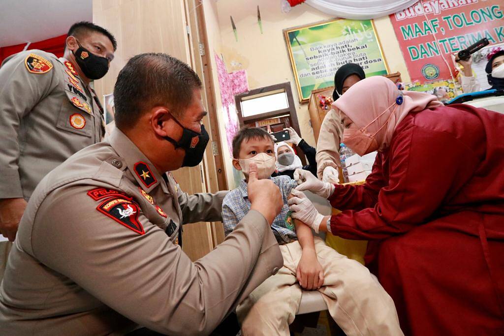 Jawa Timur, kabar1news.com – Polda Jawa Timur hari ini Jum’at (7/1/2022), menggelar vaksinasi anak usia 6 sampai 11 tahun secara serentak di 34 Sekolah di Seluruh Jawa Timur. Hal ini dilakukan sebagai upaya mendukung program pemerintah dalam penanganan covid-19, dan terbentuknya herd immunity di Jawa Timur.