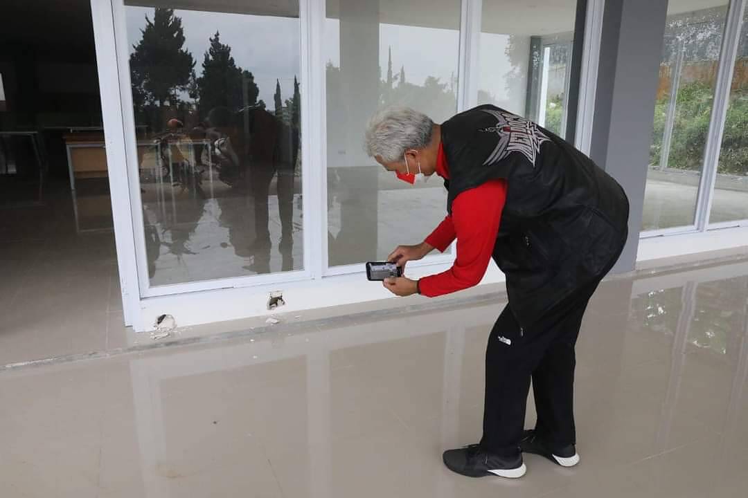 Tapi paling parah adalah tembok di bawah jendela lobi. Ganjar yang melihat keanehan lalu mencoba kekuatan tembok itu dengan menendang pelan. Ternyata langsung jebol.