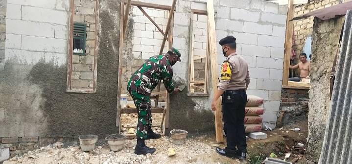 Sukabumi,Kabar1Lamongan.com – Duet anggota TNI/POLRI dalam Aksi Sosial yang dilakukan oleh Babinkamtibmas Polsek Cibadak Polres Sukabumi, Brigadir Sandi Praja dan Babinsa Kelurahan Cibadak Koramil 0711 Cibadak Kodim 0607 Kota Sukabumi, Serka Herman. Wujudkan impian warga kurang mampu di kp Cigereji RT 02 RW 021 Kelurahan/Kecamatan Cibadak, Kabupaten Sukabumi, untuk miliki rumah impian.