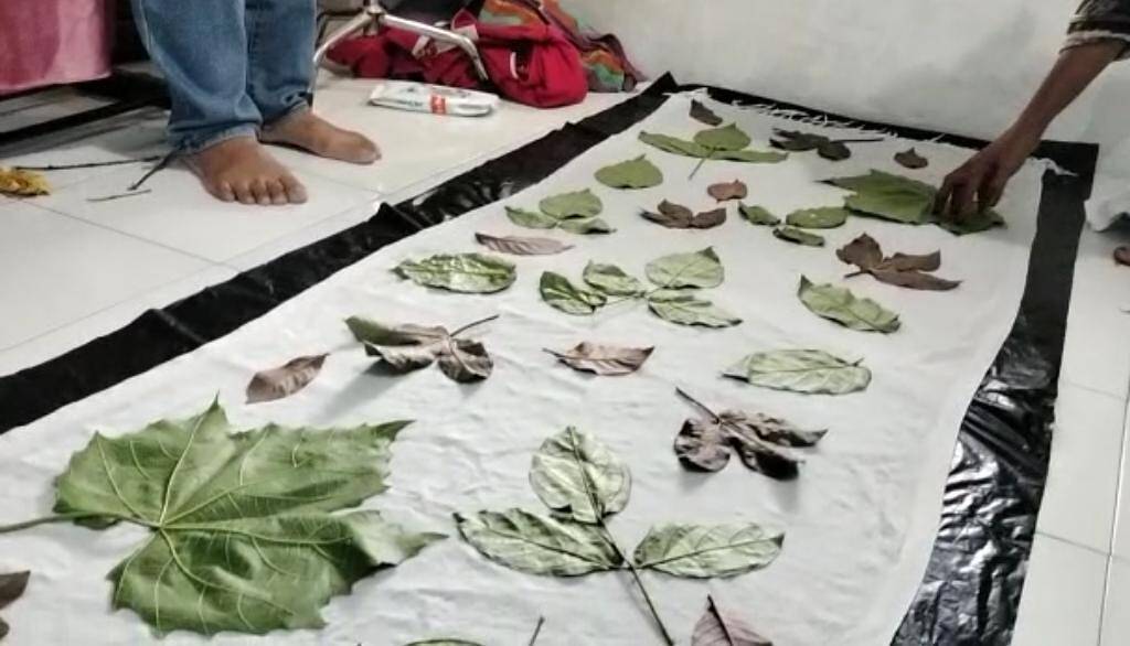 “Hari ini kita bersama belajar batik ecoprint dengan memakai semua bahan pewarna dari daun tanaman beruas jari yang bagus seperti duan jati, daun lanang, daun sirsat, daun jarak dan lain sebagainya. Kali ini adik Ano menunjukkan Batik ecoprint sangat mudah dikerjakan dan siapapun bisa mengerjakannya asal berniat,” ucap Akhir Kristiono Amd. SH. yang mempercayakan Niken Rafika selaku koordinator pelatihan batik dari Forum Kader Bela Negara Kediri Raya.