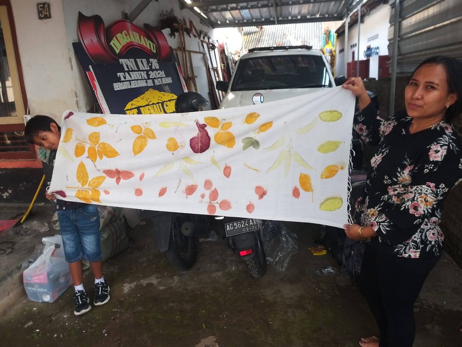 Dihadiri belasan warga dan satu siswa kelas IV dari SD Negeri Burengan III dengan semangat ingin belajar ilmu pembuatan batik ecoprint diatas bahan dasar kain Katun dan mengisi liburan sekolah menyampaikan terima kasih atas pemberian pelatihan ini.